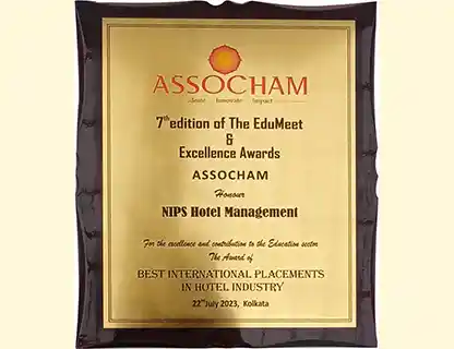 NIPS Hotel Management won the prestigious "Best International Placements in Hotel Industry" award for three consecutive years. Dr. Rajkumar Ranjan Singh, Hon'ble Minister of State for External Affairs and Education, presented the ASSOCHAM Award at the EduMeet Education Excellence Awards 2023.
