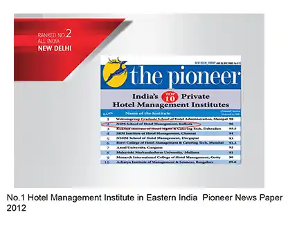 Pioneer Newspaper announced NIPS “ No.1 Hotel Management Institute in Eastern India” in 2012.
